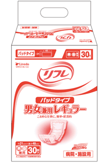 リフレ(Livedo)パッドタイプ 男女兼用レギュラー1袋(30枚入り)【大人用オムツ】【大人用 紙おむつ】【介護用紙オムツ】 【介護用品 おむつ】【大人用おむつ】【尿とりパッド】【失禁用品】【パッドタイプ】【尿とりパット】【尿取りパッド】
