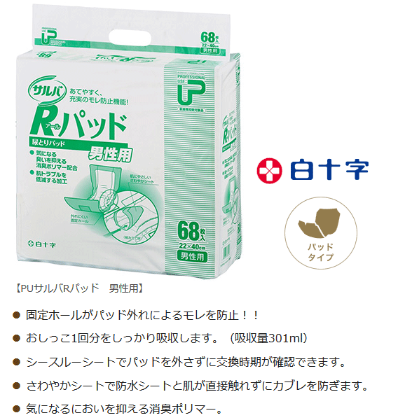【尿とりパッド 男性用】 送料無料☆ 白十字 P.UサルバRパッド 男性用ケース(68枚×4袋)【サルバ 尿とりパッド 男性用】【大人用 紙おむつ 介護用紙オムツ】【尿とりパット 尿取りパット 尿取りパッド】